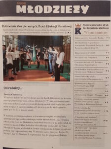 Przygotowali go Kacper, Martyna, Marta i Janek z klasy 3A. Gratulujemy! Wydanie drukiem było możliwe dzięki wsparciu naszej nieocenionej Rady Rodziców, której w tym miejscu składamy serdeczne wyrazy podziękowania. Numer drugi jest w przygotowaniu i poświęcony będzie 35-leciu szkoły. Nasz zespół redakcyjny przeprowadził podczas tej uroczystości szereg wywiadów, które już niedługo ukażą się drukiem. Trzymajcie kciuki!