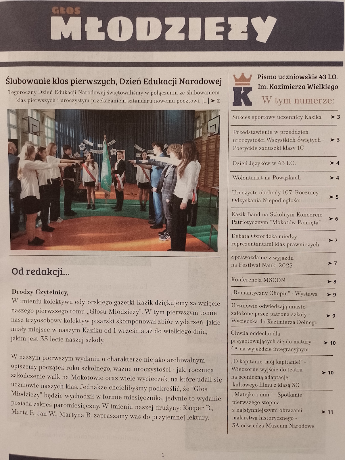 Dzień 9 XII 2025 był też ważny dla naszego Samorządu Uczniowskiego ze względu na ukazanie się pierwszego numeru gazetki szkolnej Głos Młodzieży.