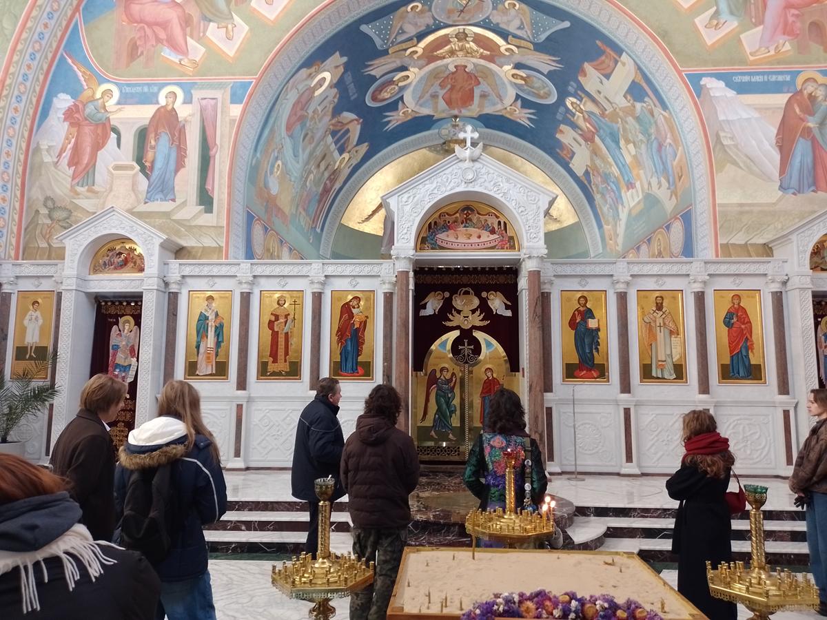 Dnia 09 02 2026 roku klasa 3A pod opieką wychowawcy (p. Paweł Skworoda) zwiedziła świątynię prawosławną Hagia Sophia w Warszawie przy ul. Puławskiej 568. Naszym przewodnikiem był nauczyciel i doradca metodyczny przedmiotu religii prawosławnej p. Bogdan Kuźmiuk z Mazowieckiego Samorządowego Centrum Doskonalenia Nauczycieli. Zostaliśmy tam zaproszeni w ramach Tygodnia modlitw o jedność chrześcijan, ale ze względu na panujące mrozy minęło trochę czasu zanim dotarliśmy na miejsce.