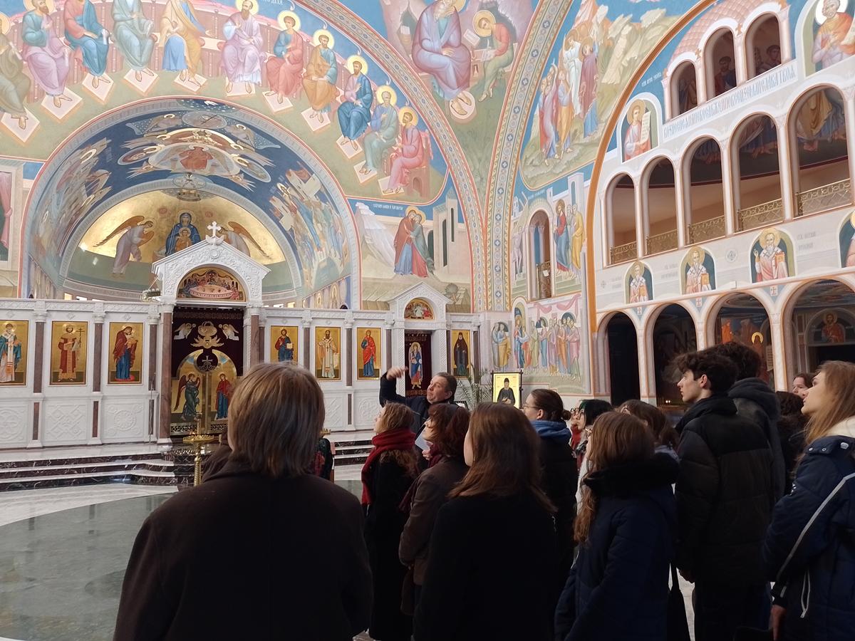 Ideą przewodnią spotkania w cerkwi była możliwość pogłębienia wiedzy na temat wielokulturowości i duchowości Rzeczypospolitej na przestrzeni wieków i zarazem okazja do ukazania wielokulturowości we współczesnym polskim społeczeństwie. Zwiedzanie przybliżyło uczniom treści z historii, wiedzy o społeczeństwie, kulturze i edukacji obywatelskiej. Nowobudowana cerkiew jest kopią konstantynopolitańskiej Hagi Sophii wybudowanej przez cesarza Justyniana w VI wieku. Obecnie cerkiew jest w znacznym stopniu zilustrowana polichromią, mozaiką, ikonografią co w wyjątkowy sposób ilustruje wiele scen i wydarzeń o tematyce biblijnej. Na zakończenie spotkania zostaliśmy zaproszeni na warsztaty z „pisania” ikon i warsztaty śpiewu cerkiewnego. Mamy nadzieję na skorzystanie z nich w cieplejsze miesiące.