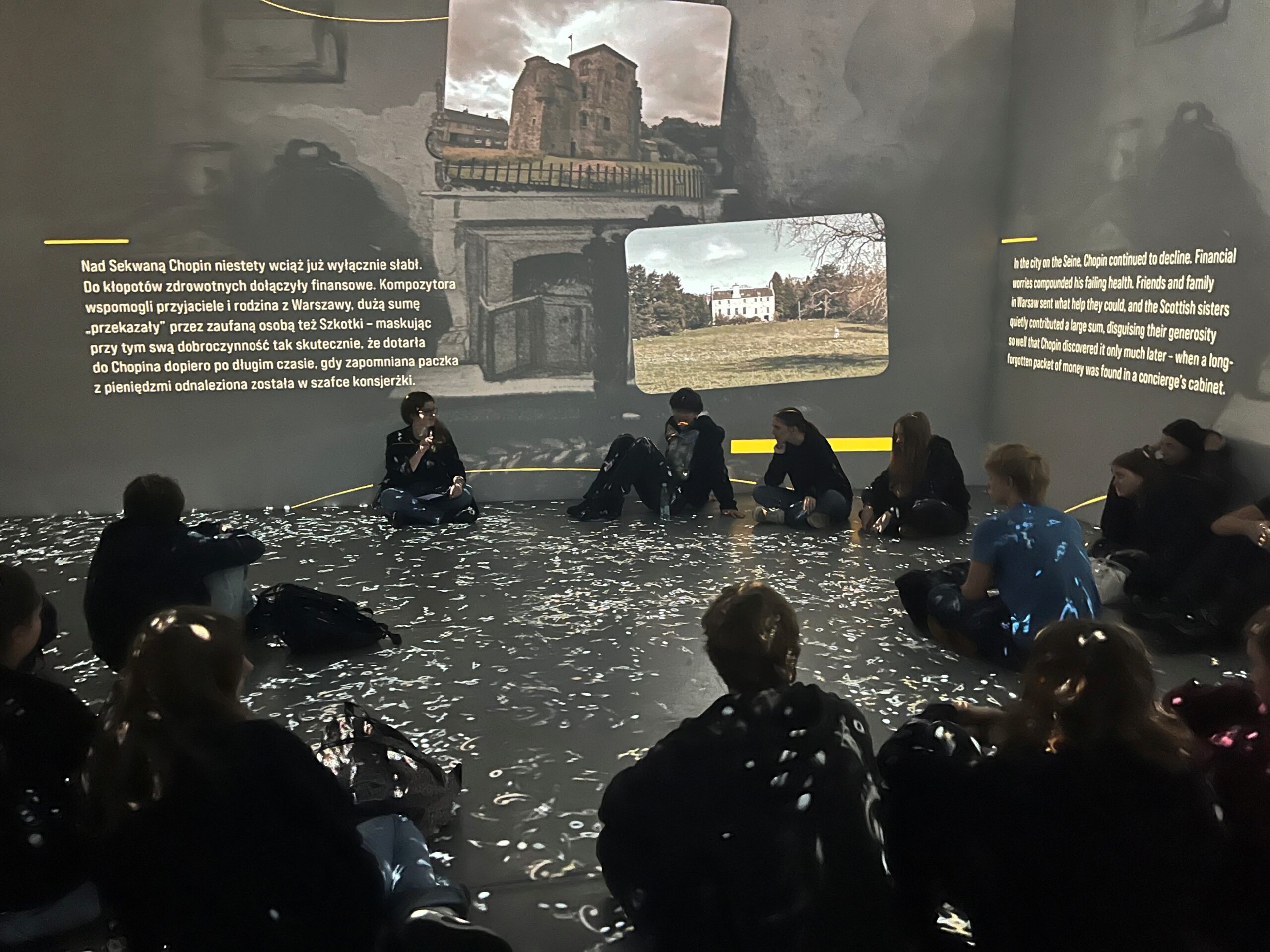 Klasa 3d uczestniczyła w zwiedzaniu wystawy immersyjnej „Romantyczny Chopin”. Wydarzenie odbyło się w przestrzeni Art Box Experience, mieszczącej się w budynku Fabryki Norblina w Warszawie.