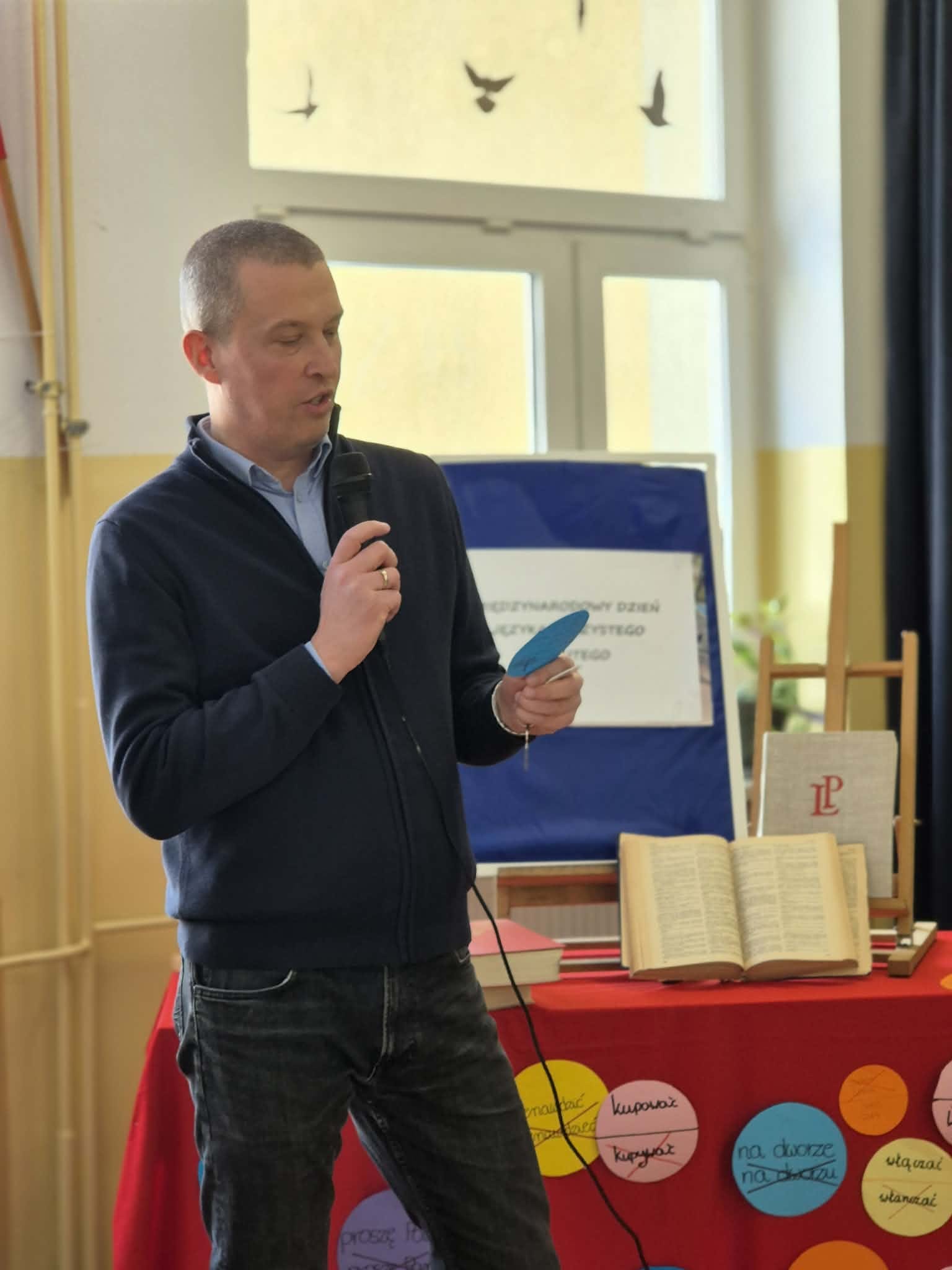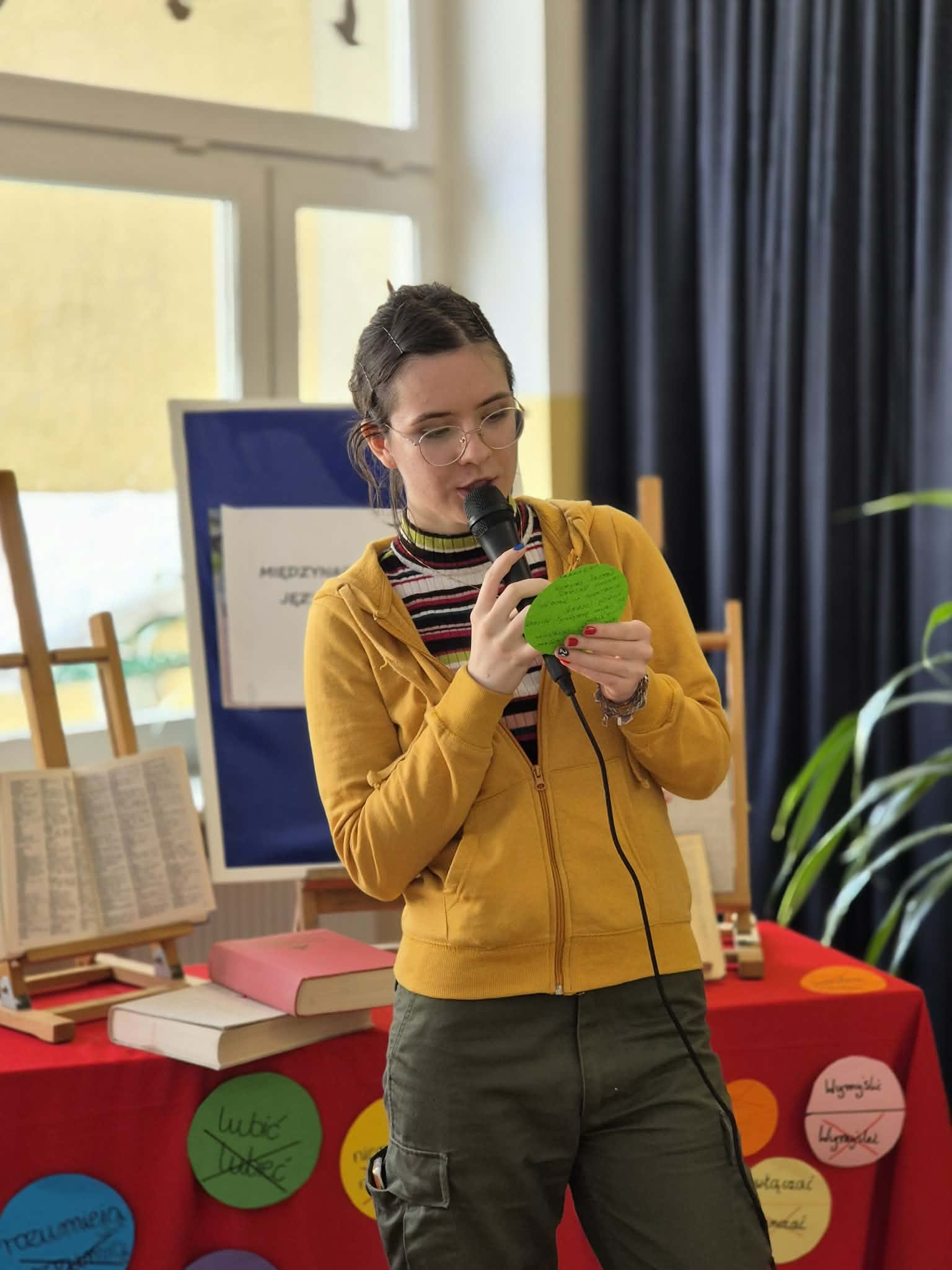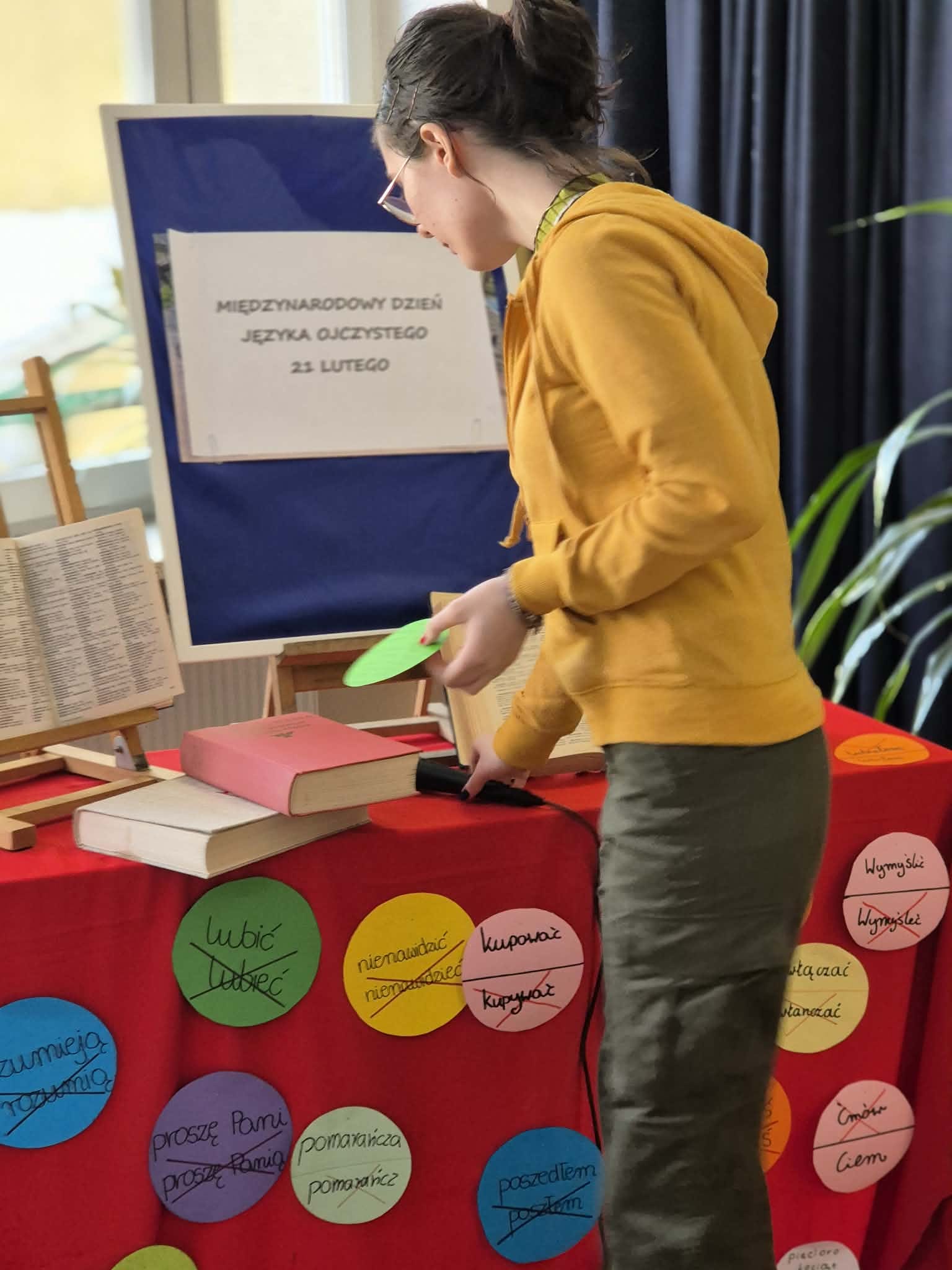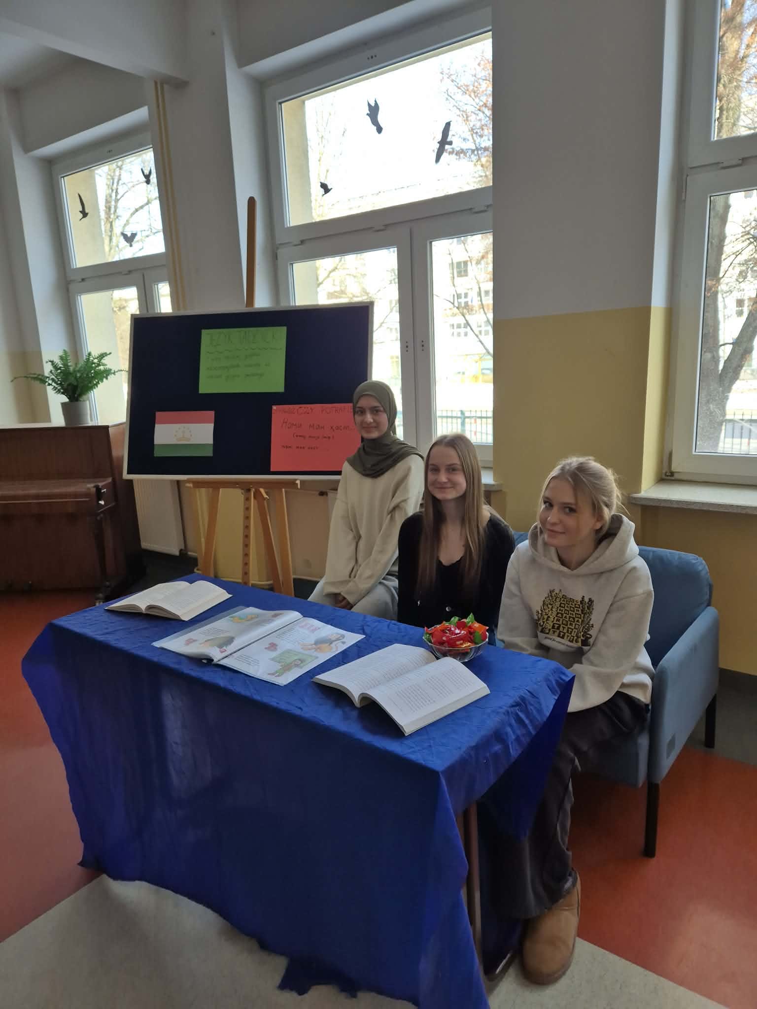 Uczniowie przygotowali prezentację swoich narodowych języków były więc stoiska języka tadżyckiego, ukraińskiego, białoruskiego i języka polskiego. Każdy miał okazję przedstawić się w różnych językach, a wiele zabawy mieli uczestnicy imprezy czytając polskie łamańce językowe.
