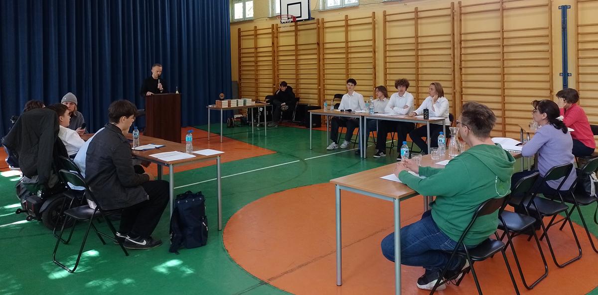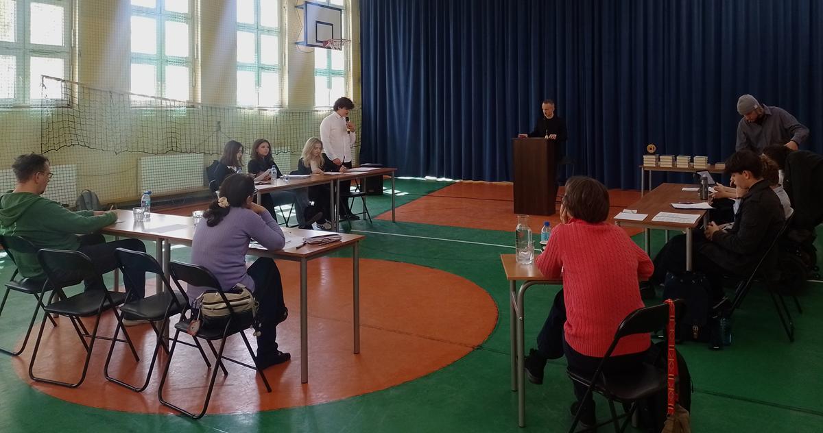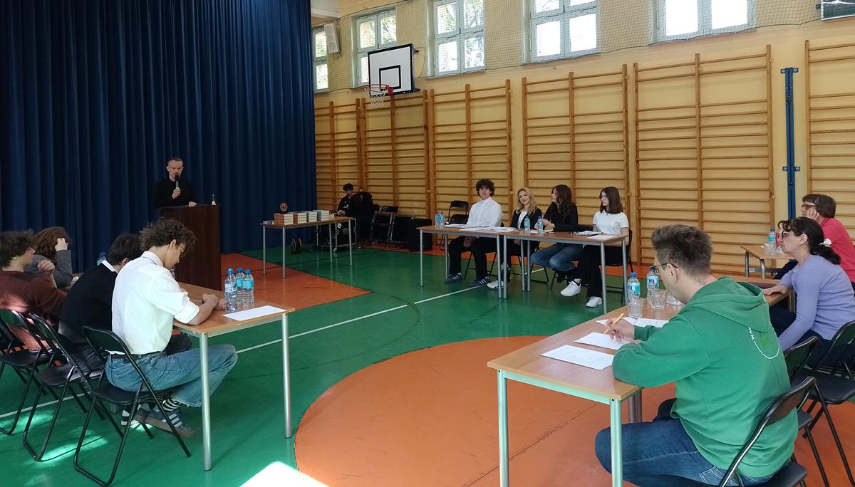Konkurs otworzyła p. Dyrektor Agata Trykacz, która przywitała drużyny i życzyła uczestnikom ostrej debaty oraz wielu sukcesów. Debatę jako marszałek prowadził p. Krzysztof Bromberek, nauczyciel języka polskiego w naszym liceum.