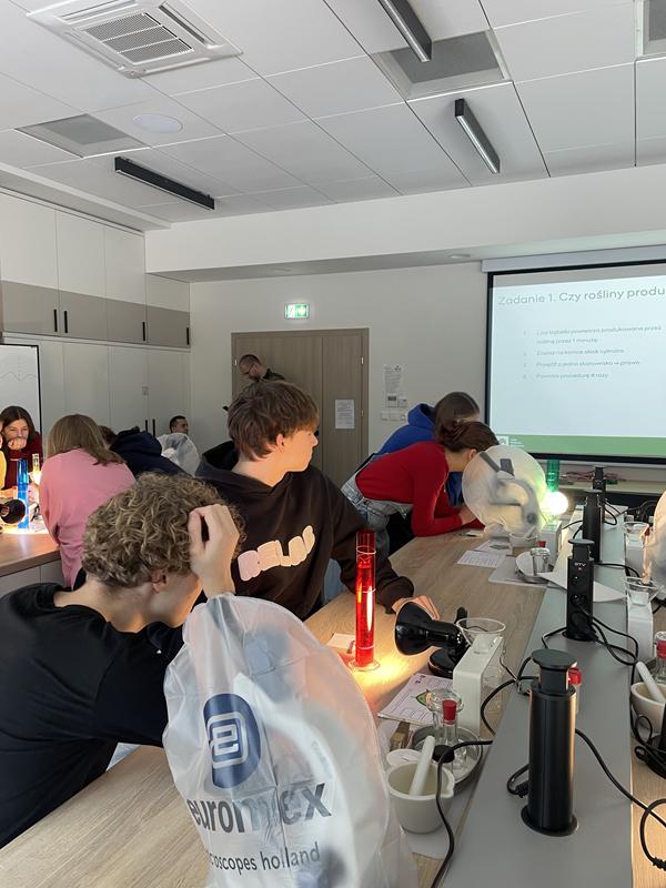 Zajęcia miały charakter praktyczny — uczestnicy samodzielnie przeprowadzali doświadczenia i obserwacje. Udało im się zaobserwować produkcję tlenu przez rośliny, wykonać chromatografię barwników oraz poznać budowę i funkcjonowanie komórki roślinnej.